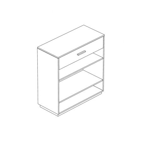 Deux tiroirs + 2 portes. Finition bois personnalisable.