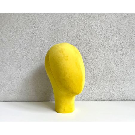 Cette tête display en fibre de verre recouverte de velours cousu main sera idéale pour présenter les chapeaux, casquettes, foulard et serre-tête.