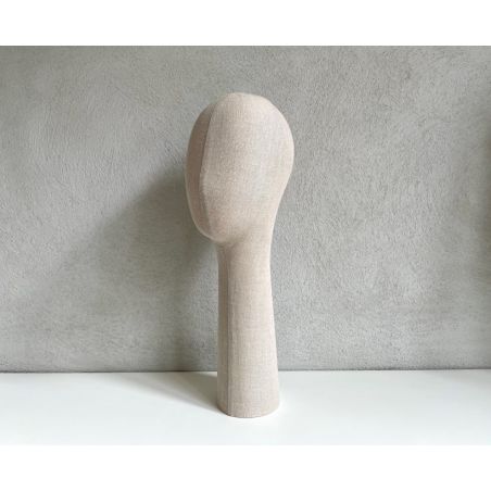 Tête Display de présentation recouverte d'un tissu en lin naturel, idéal pour présenter un chapeau, casquette, foulard ou serre-tête